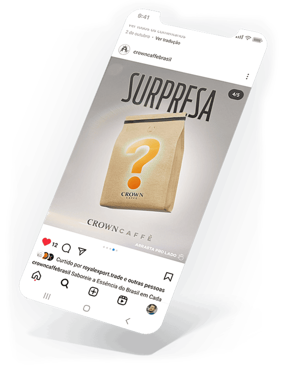 Cada detalhe foi cuidadosamente pensado para criar uma identidade que une a força e o caráter de um café de alta qualidade com a fantasia e o encantamento de um momento especial. Na Crown Caffè, cada grão é uma celebração, convidando o consumidor a vivenciar um café digno de realeza.
